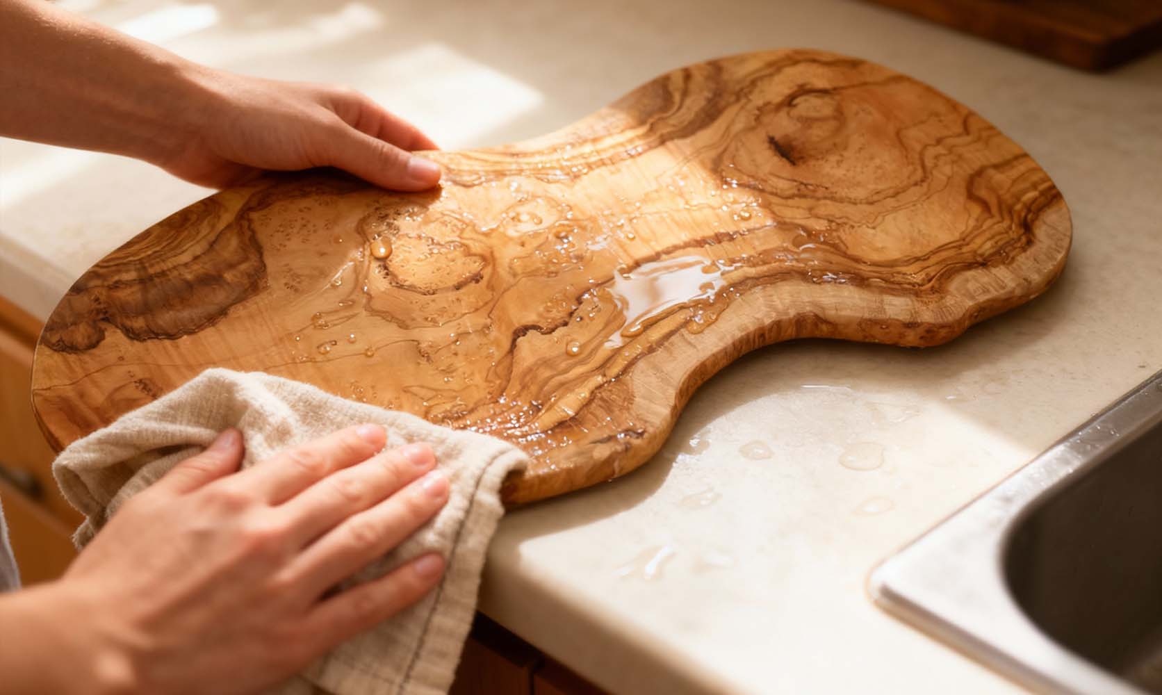 Kitchen utensils made of olive wood are durable, antibacterial, and easy to care for. Simply clean with mild soapy water and occasionally treat with olive oil.