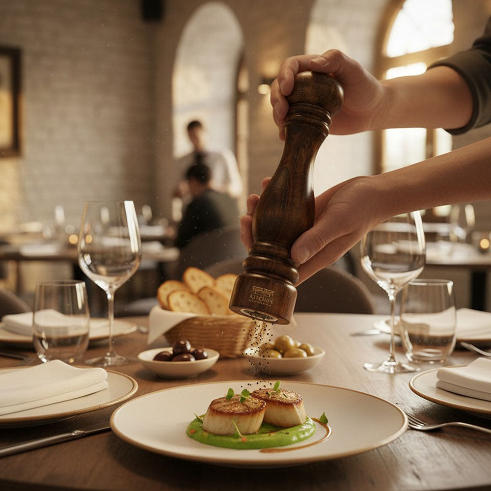 En mi cocina, la calidad y la consistencia son lo que cuenta... exactamente eso es lo que encuentro en esta tabla de cortar de madera de olivo. La uso todos los días, ya sea para cortar pan o para preparar nuestros platos. Para mí, simplemente pertenece a la cocina, como la vista de la montaña desde mi ventana.