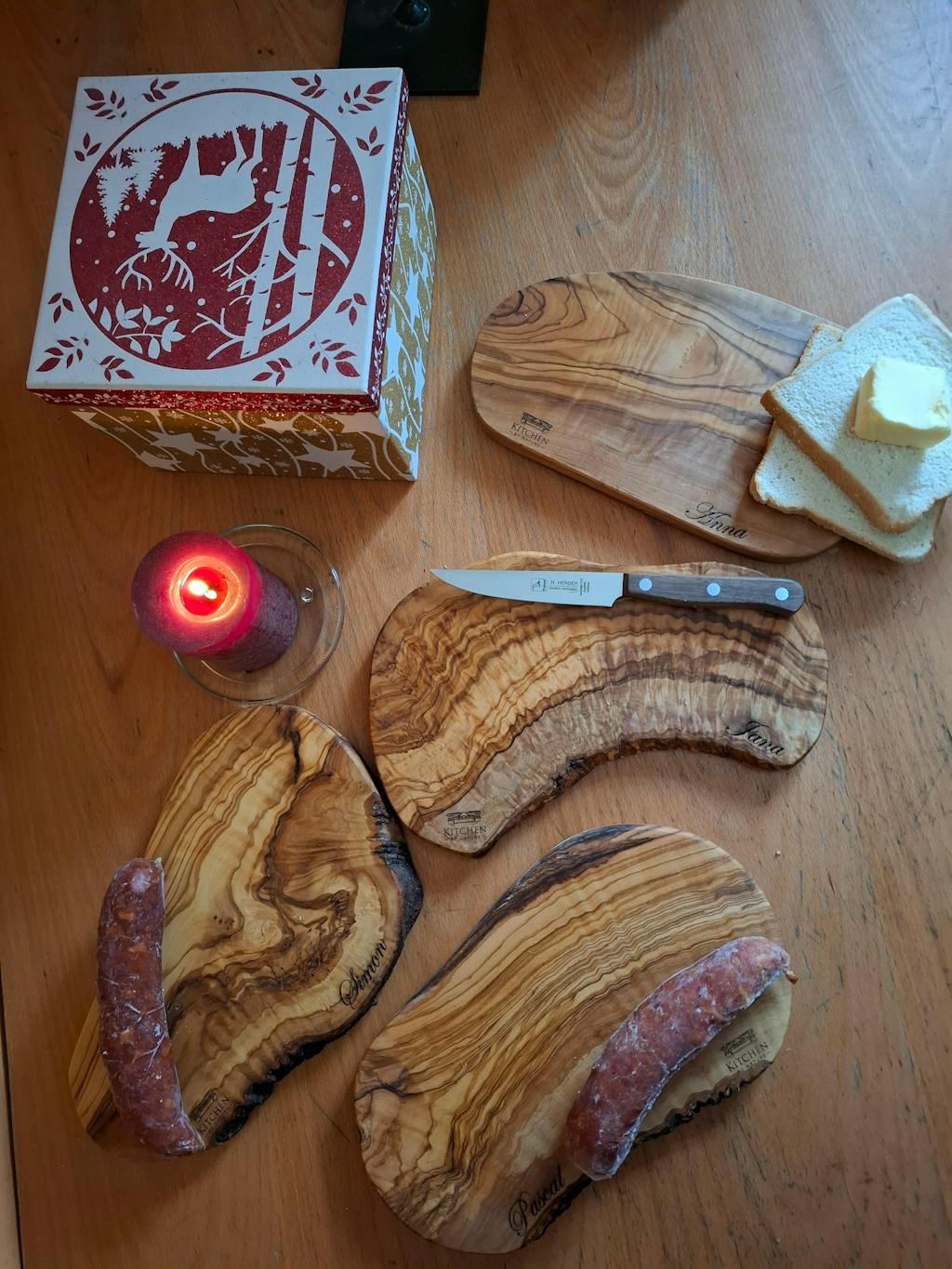 › 3 x deski śniadaniowe z litego drewna oliwnego