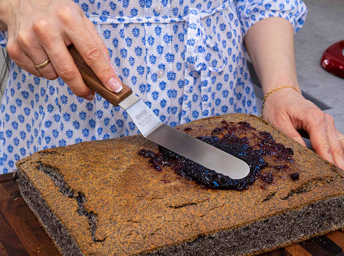 Die abgewinkelten Spatel ermöglichen dir, Cremes und Glasuren exakt zu führen, ohne die Oberfläche zu berühren. Mit den drei verschiedenen Größen und passendem Teigschaber hast du für jedes Detail das richtige Werkzeug.