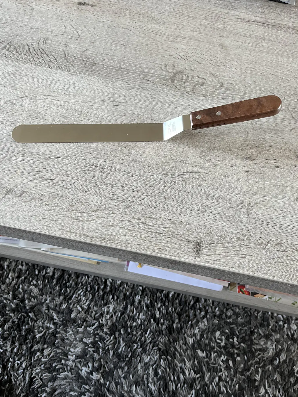 Die rostfreien Edelstahlflächen sind auf Hochglanz poliert, um eine glatte, porenfreie Oberfläche zu garantieren. Dies verhindert das Anhaften von Cremes und sorgt für ein spiegelglattes Finish auf deinen Torten, das mit herkömmlichen, matten Spateln nicht erreichbar ist.